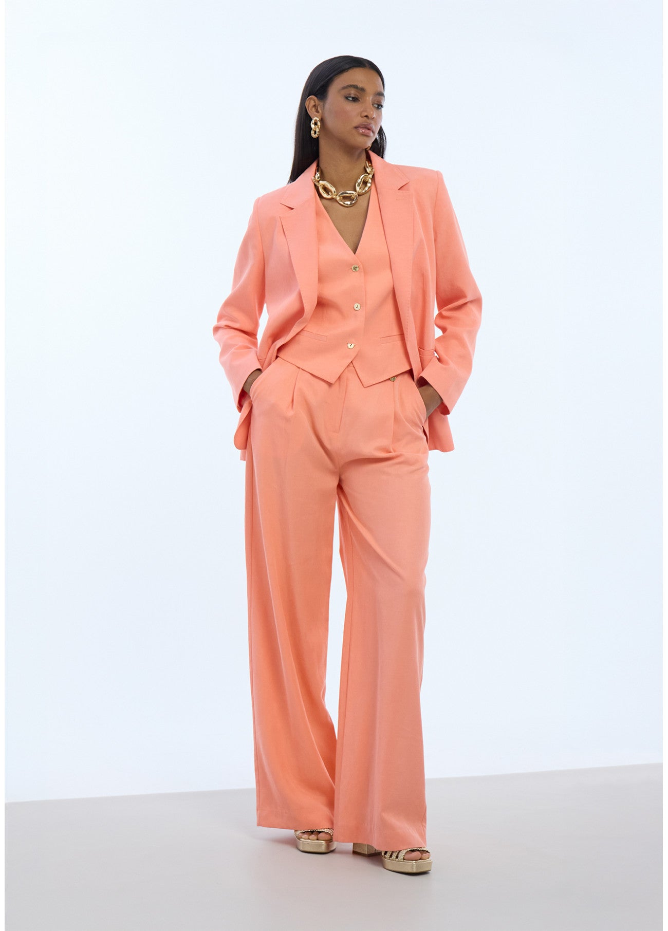 PANTALÓN PALAZZO PINZAS CORAL