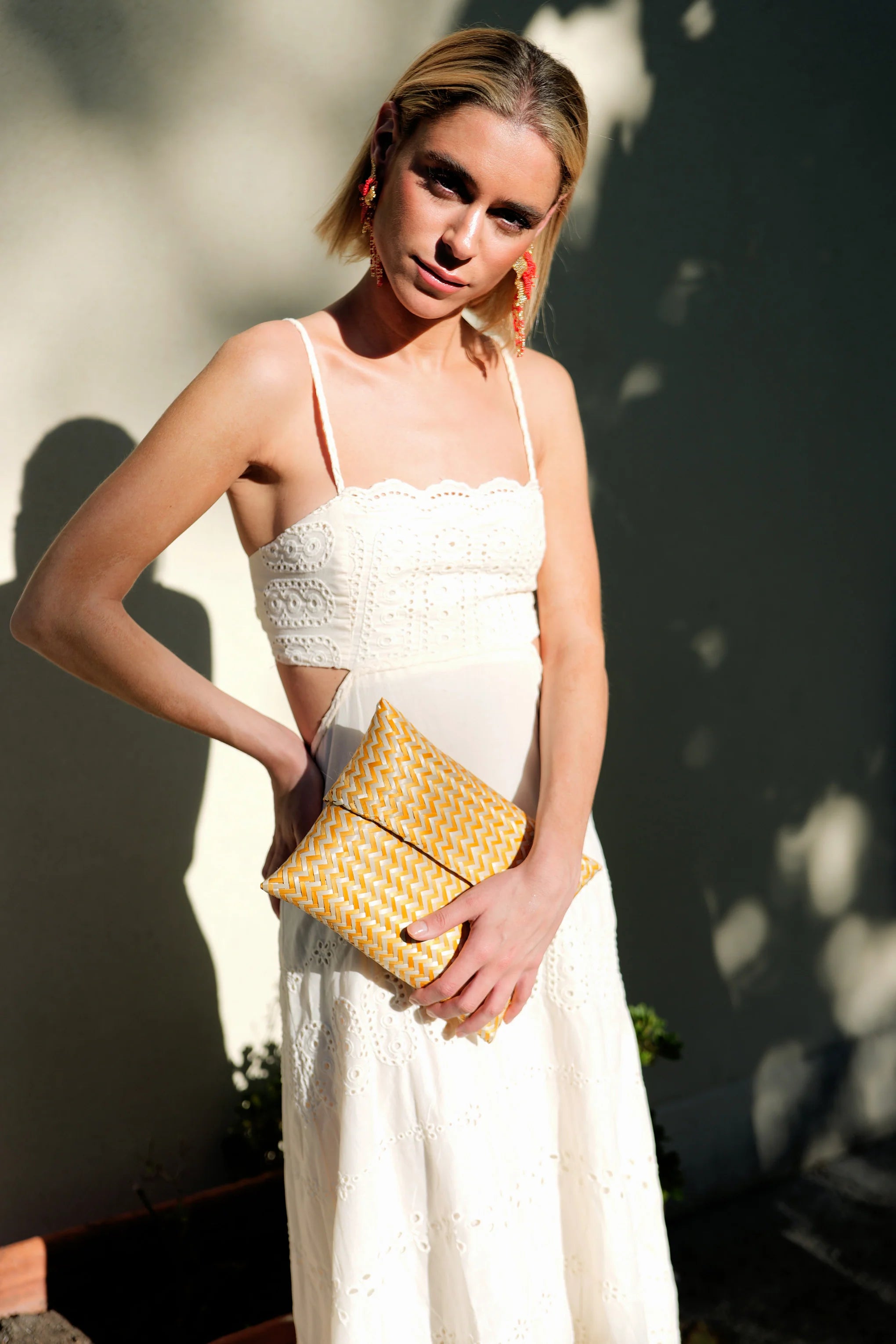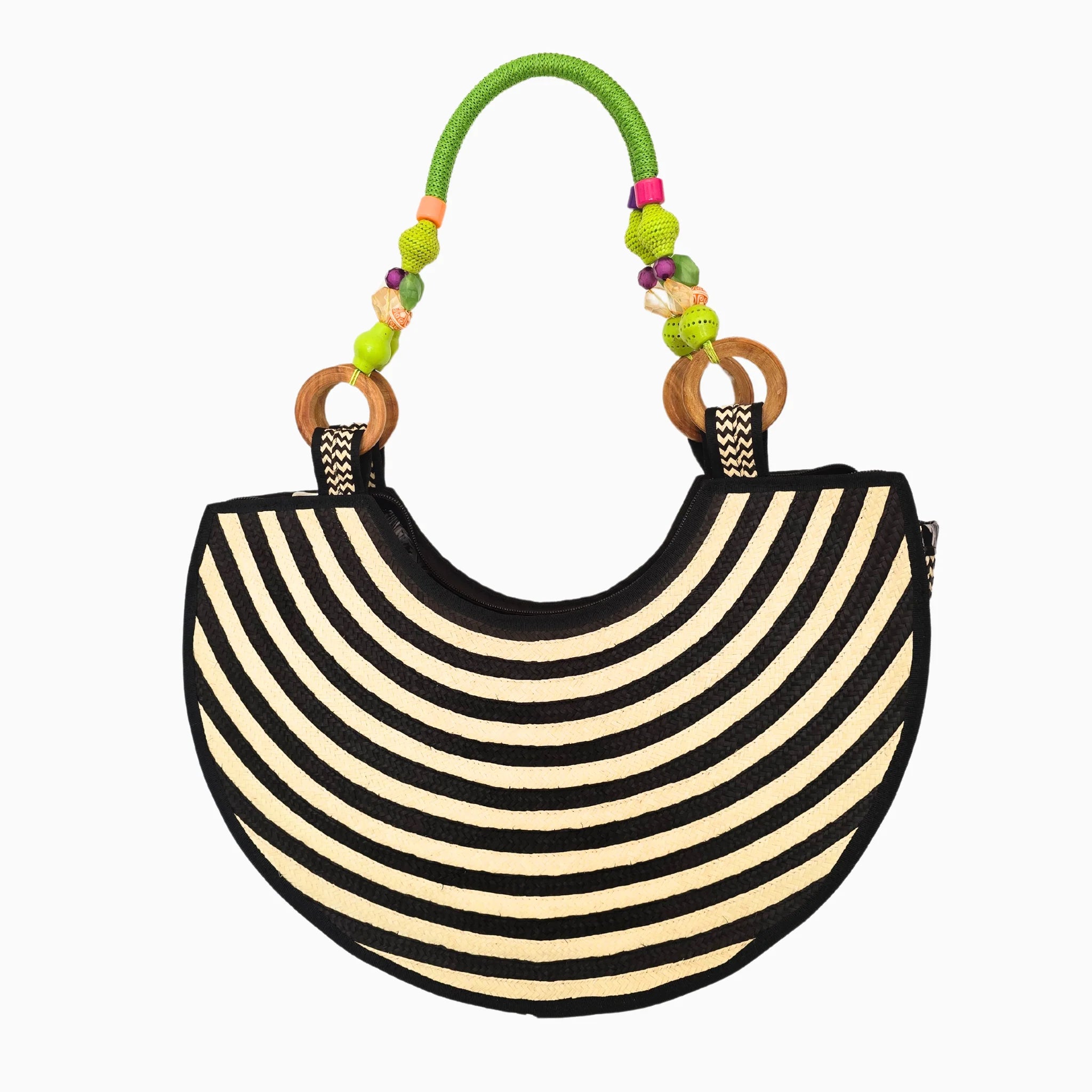BOLSO CLAUDIA DE RAYAS MOSTAZA Y BLANCO