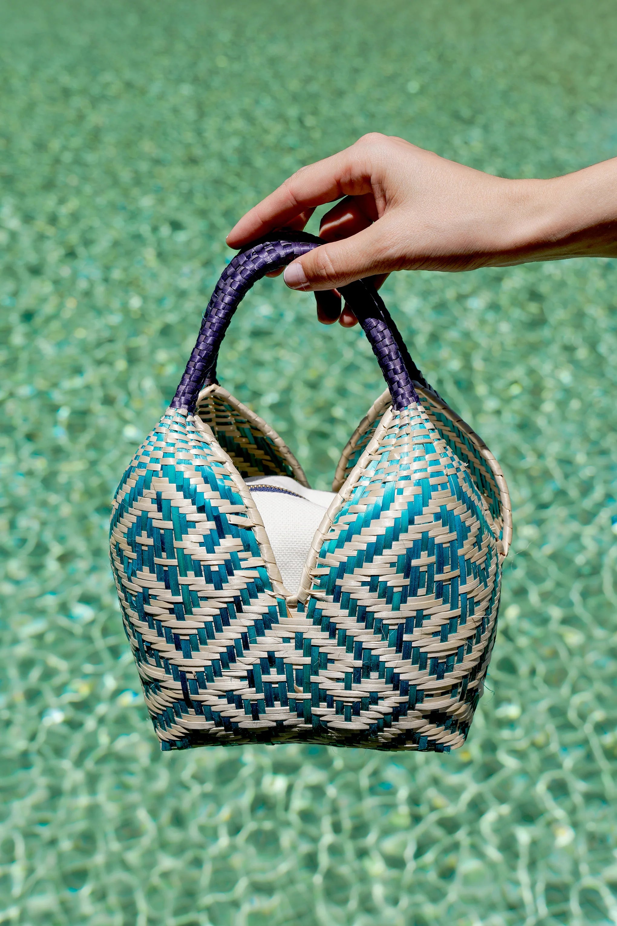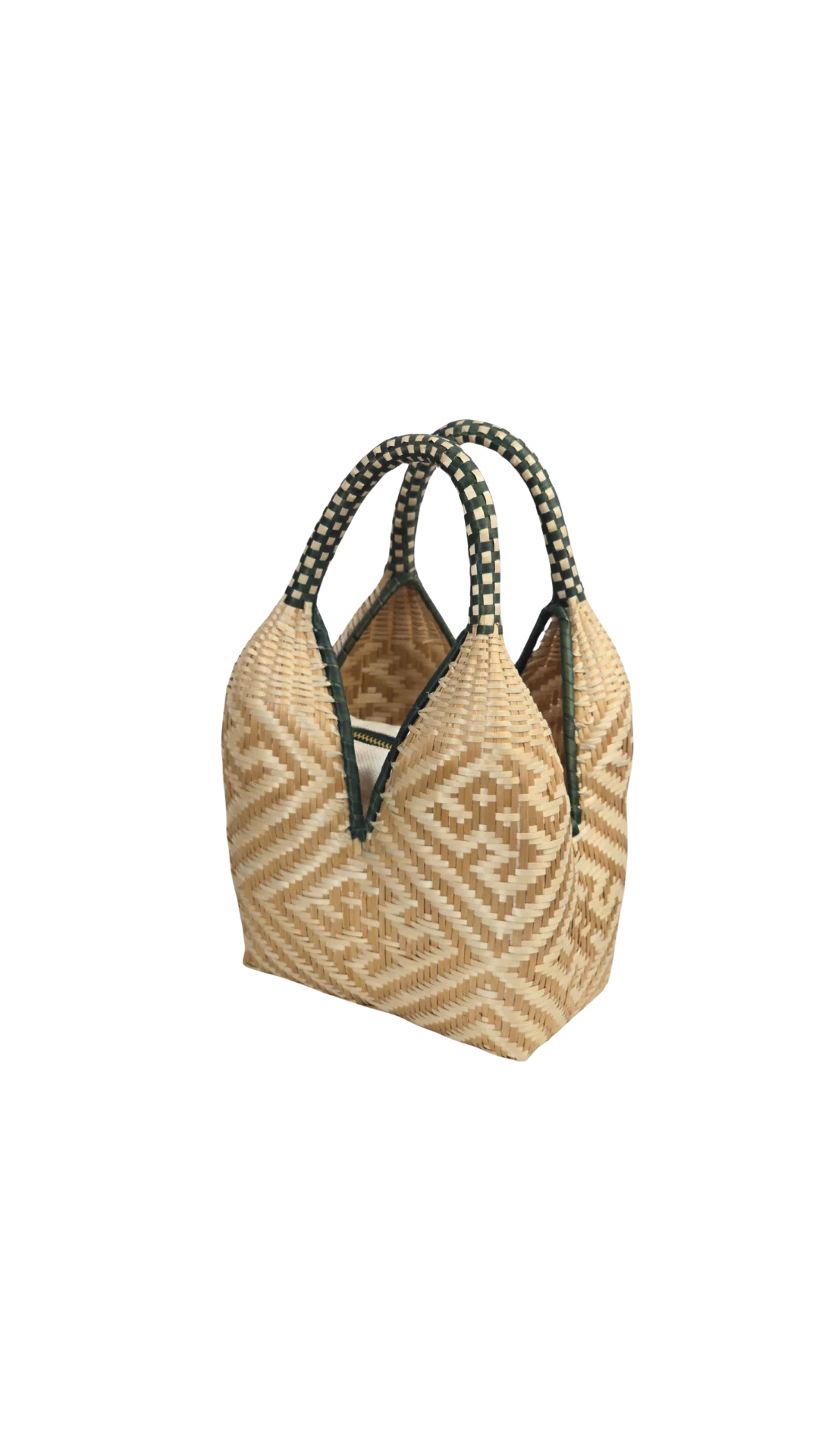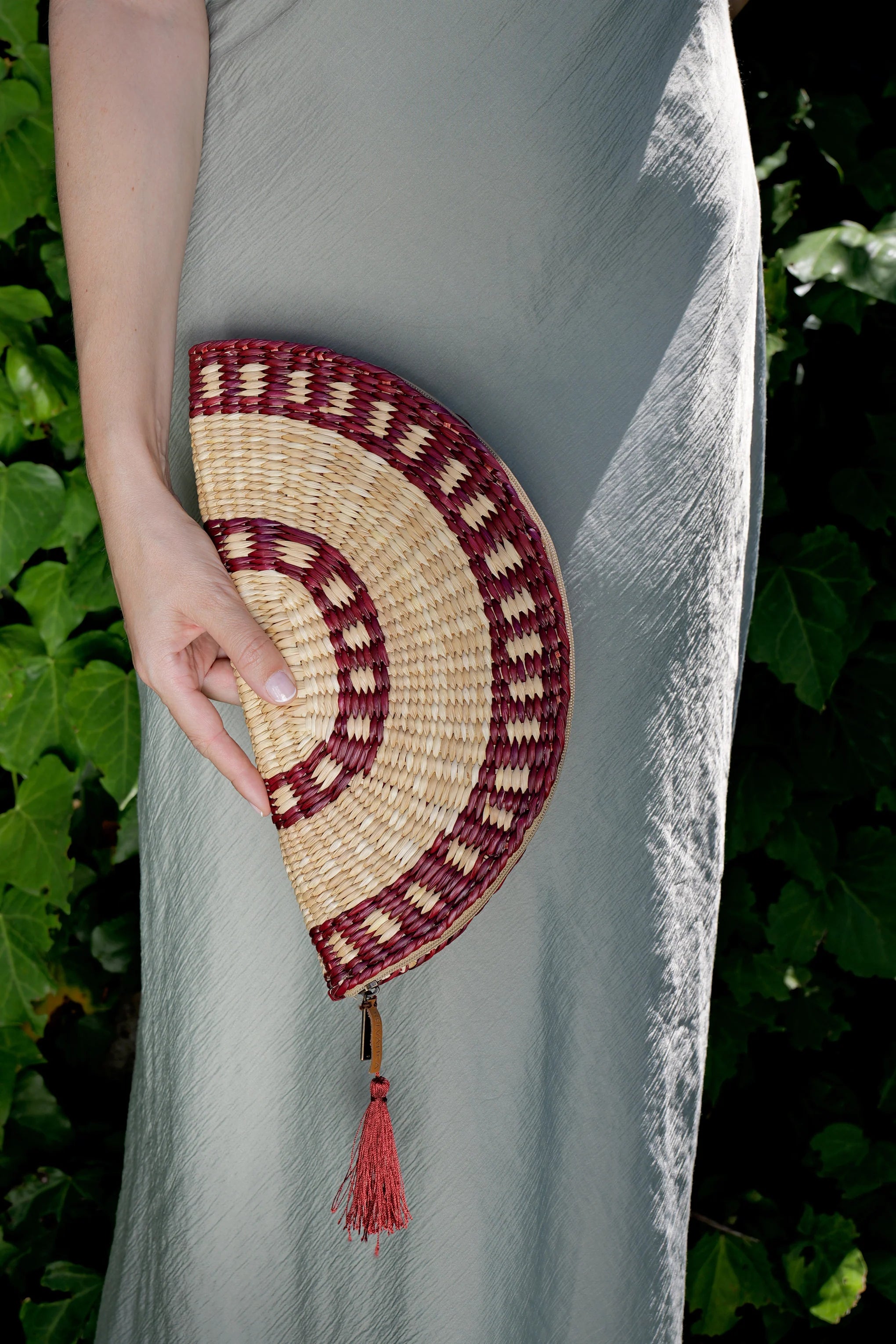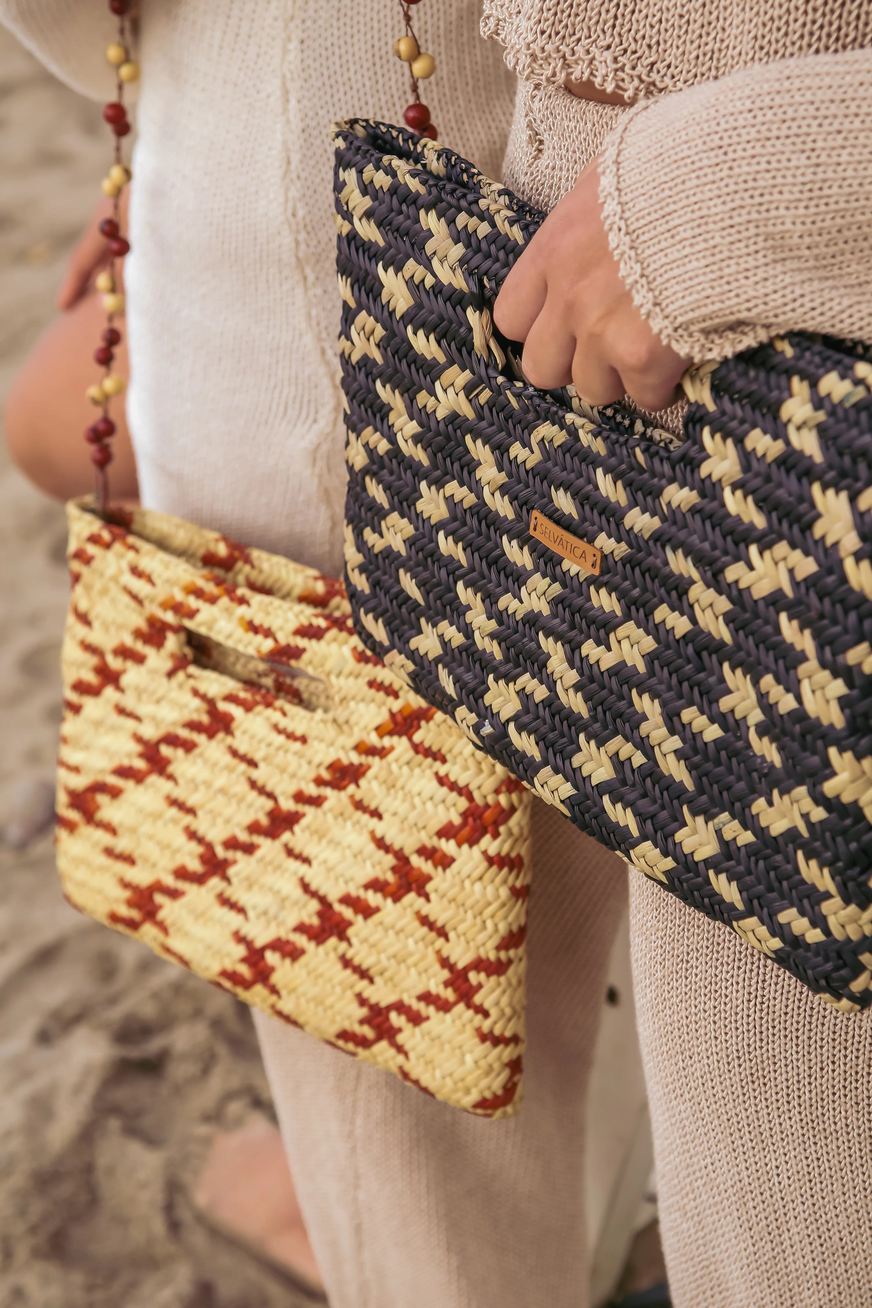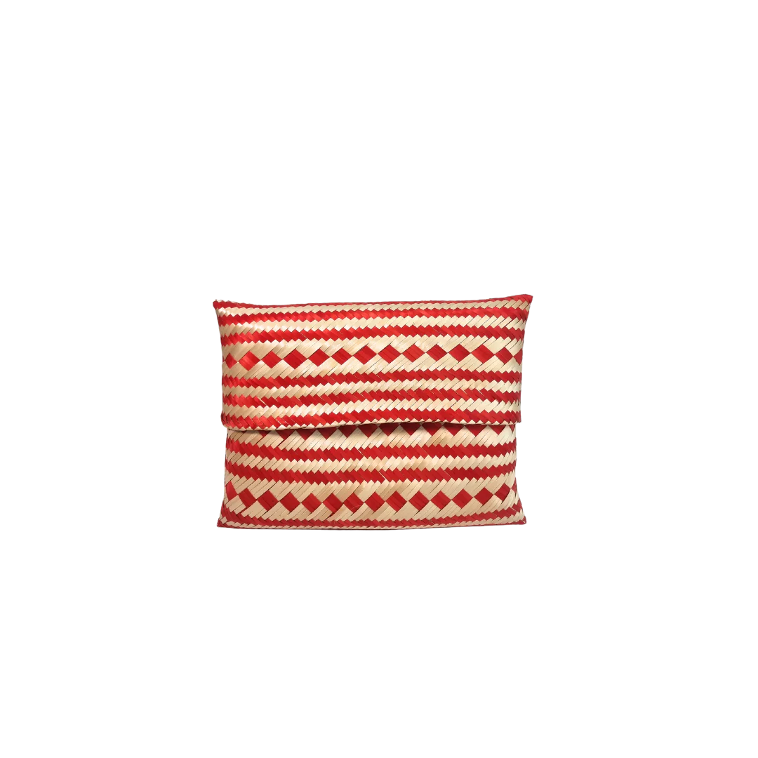 BOLSO PARSE ROMBO ROJO Y NATURAL