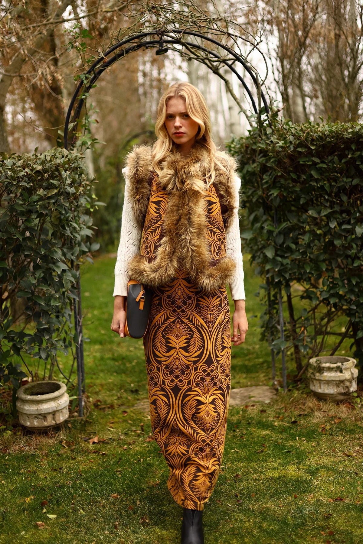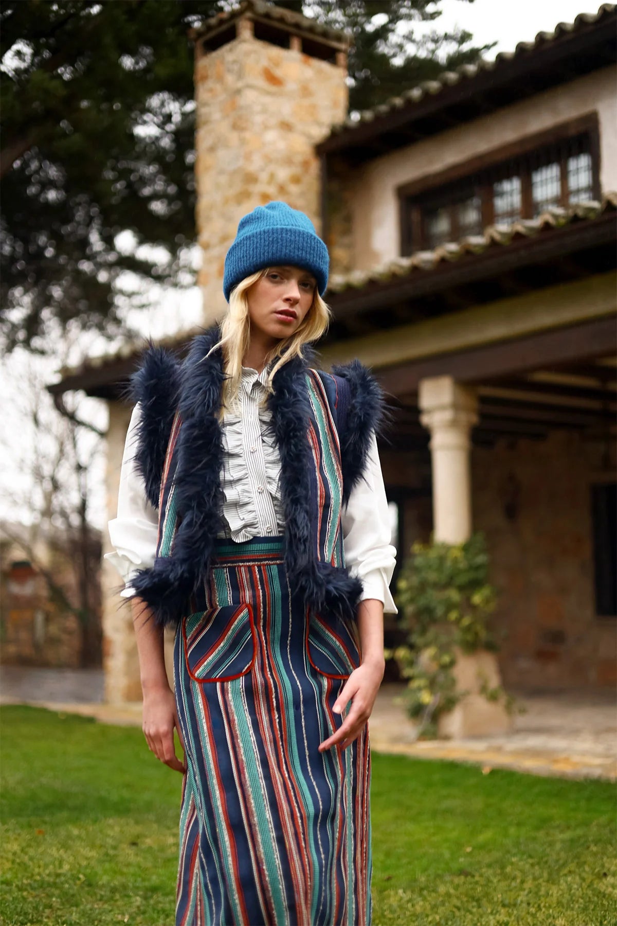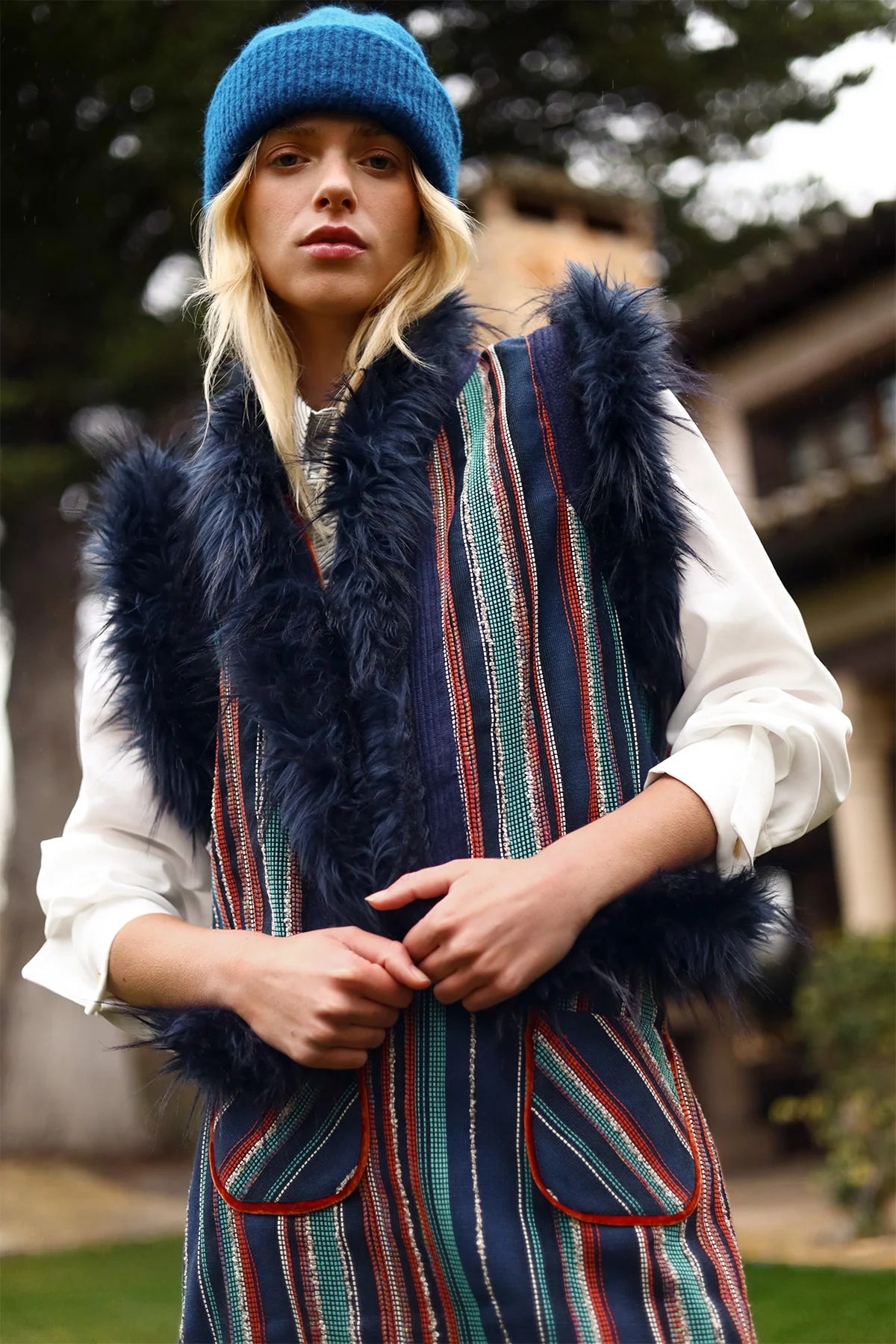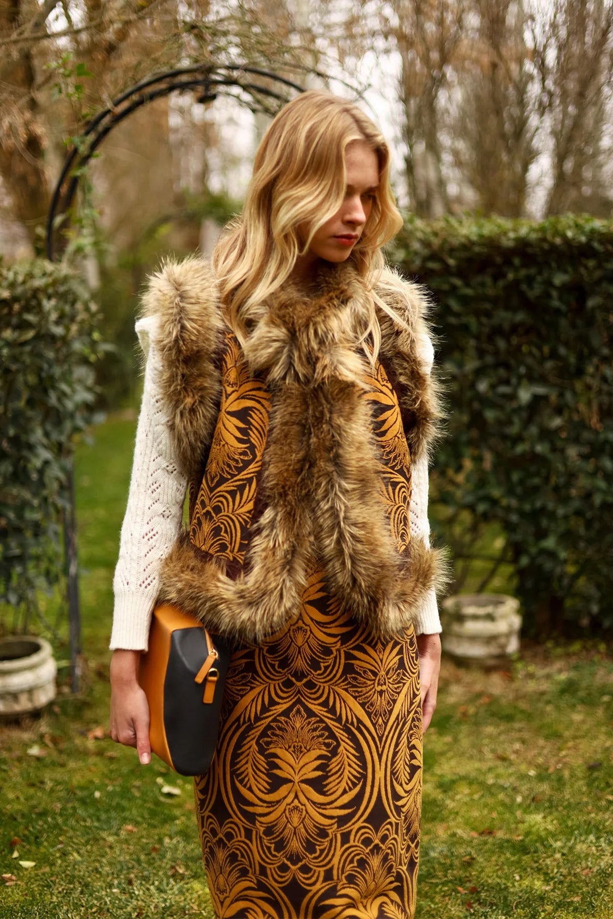 ABRIGO CORTO SIN MANGAS COLOR CRUDO EFECTO PATCHORK