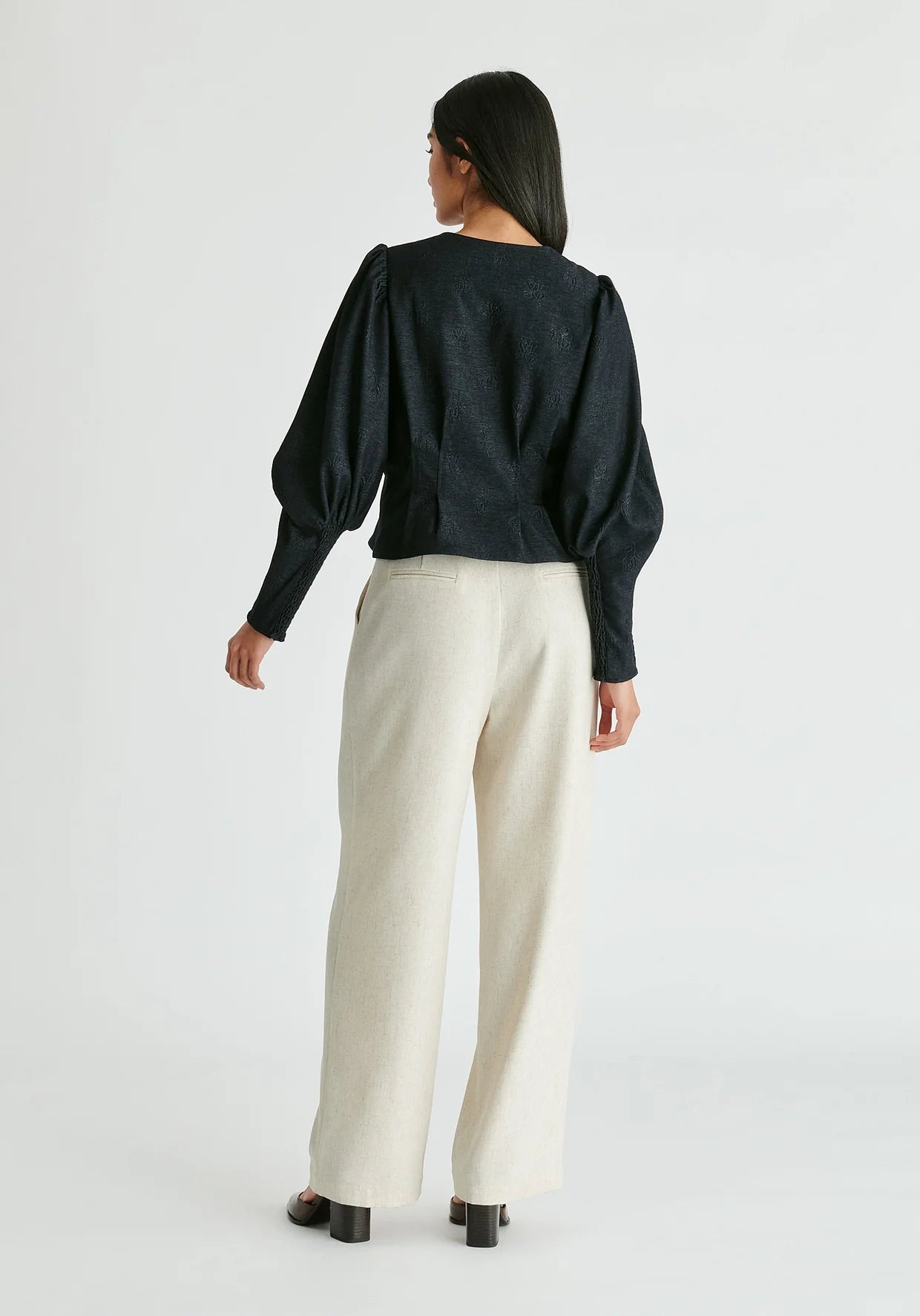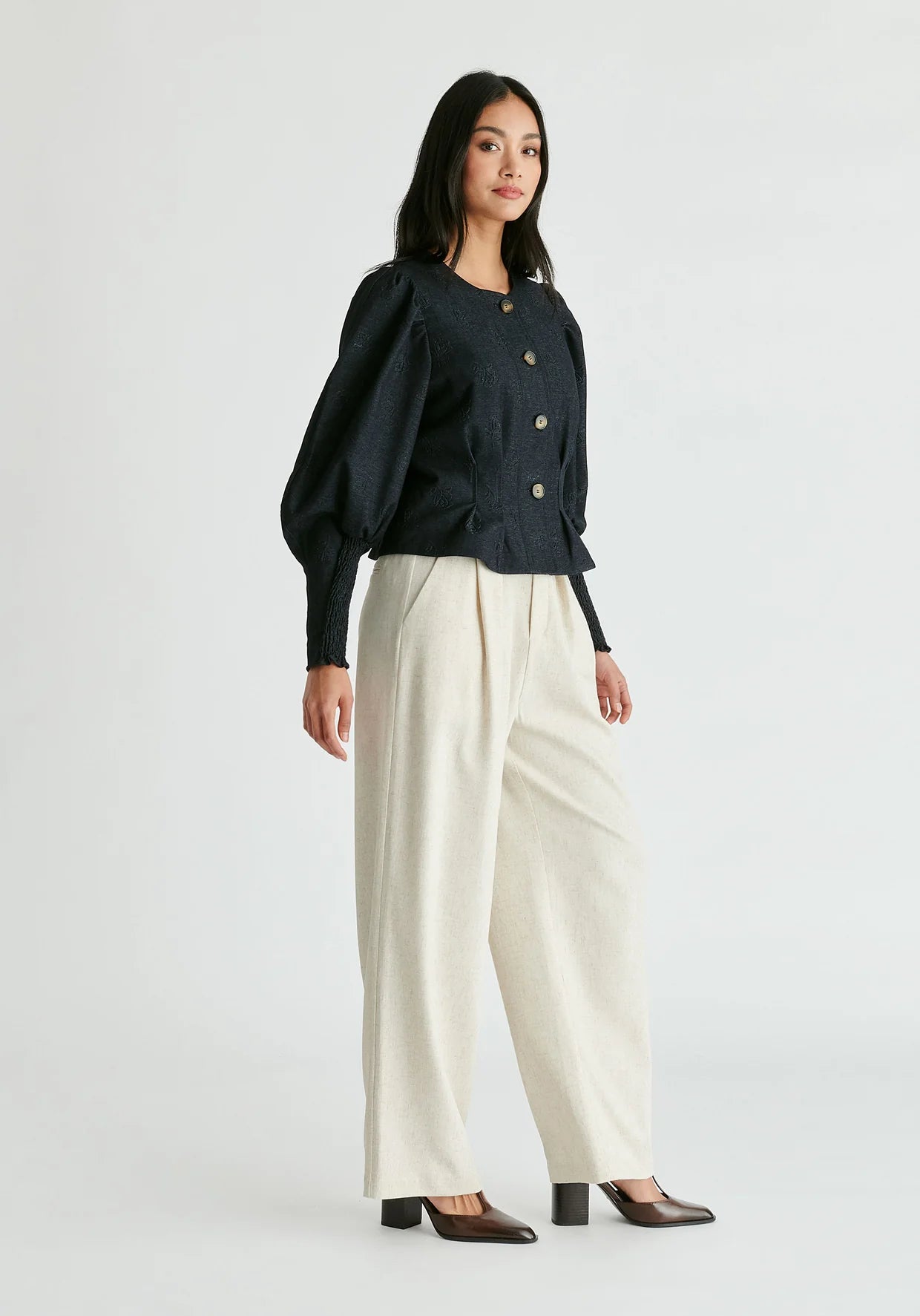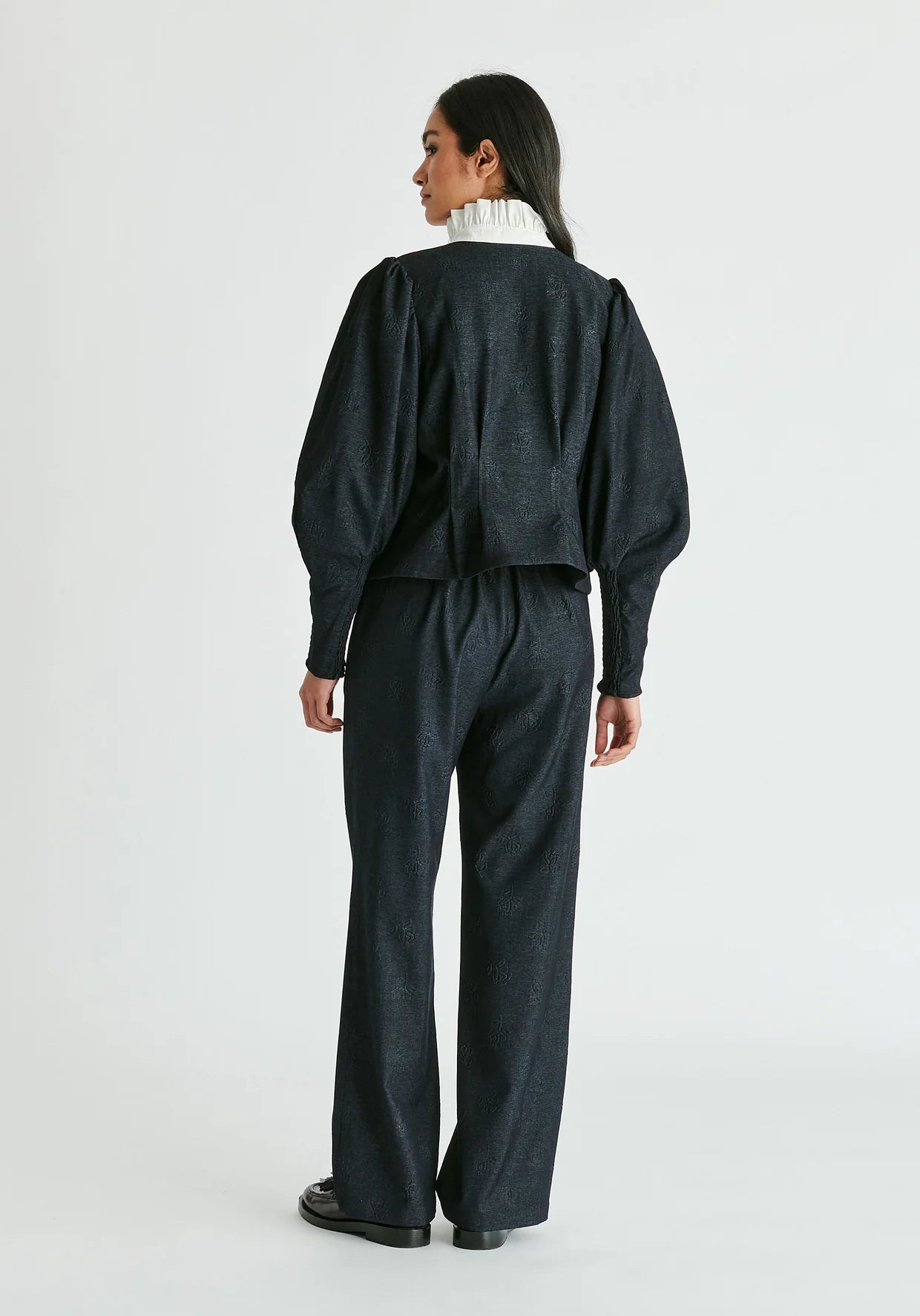 Esta chaqueta con efecto vaquero presenta un precioso diseño floral en relieve y mangas abullonadas con puños ajustados. Un panel fruncido en los puños proporciona un ajuste cómodo y elegante. Los pliegues en la cintura delantera y trasera realzan tu figura. Con cierre de botones en la parte delantera, la chaqueta está forrada con un fino acolchado para mayor calidez y comodidad. Combínala con los pantalones a juego para un look completo y coordinado.
