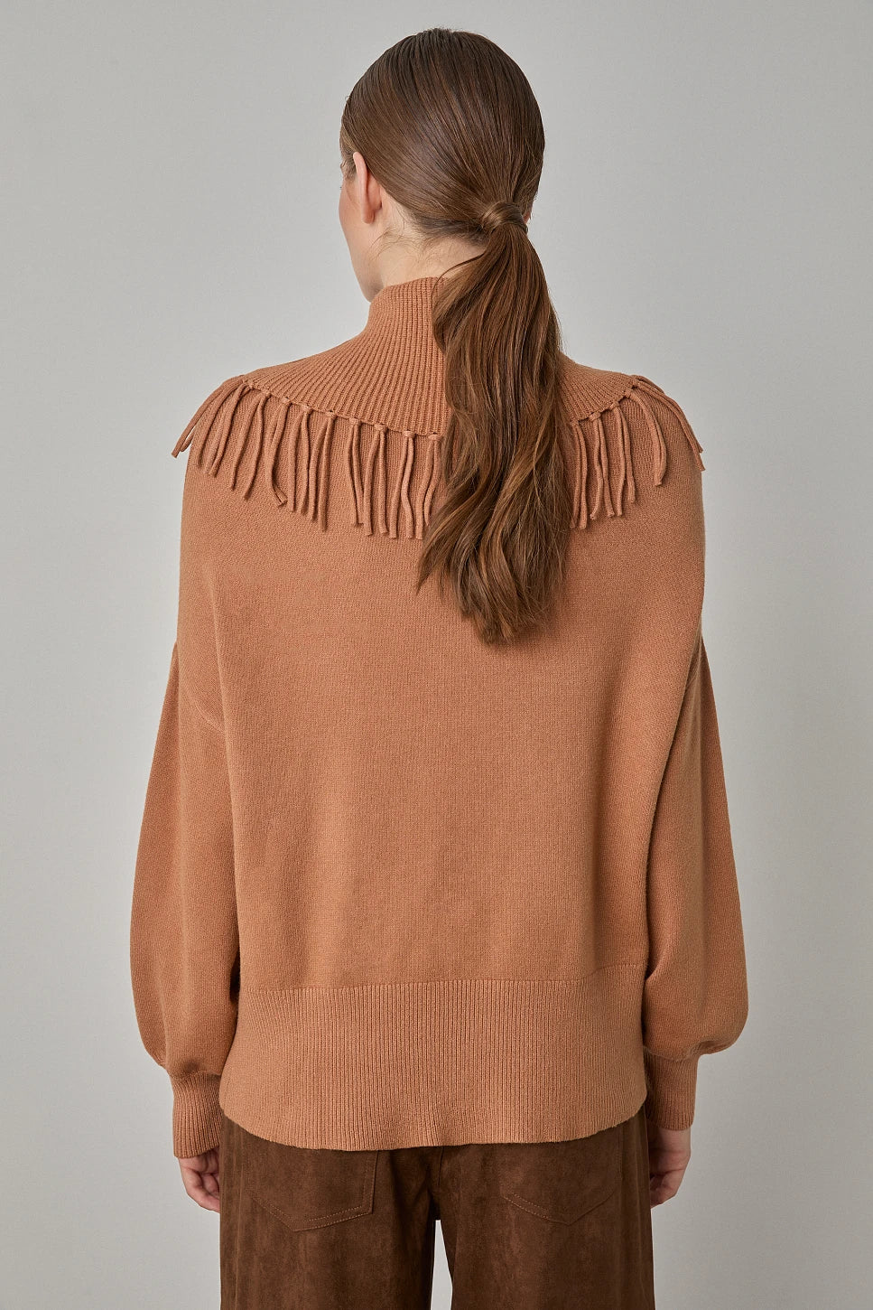 JERSEY CUELLO ALTO CON FLECOS CARAMEL