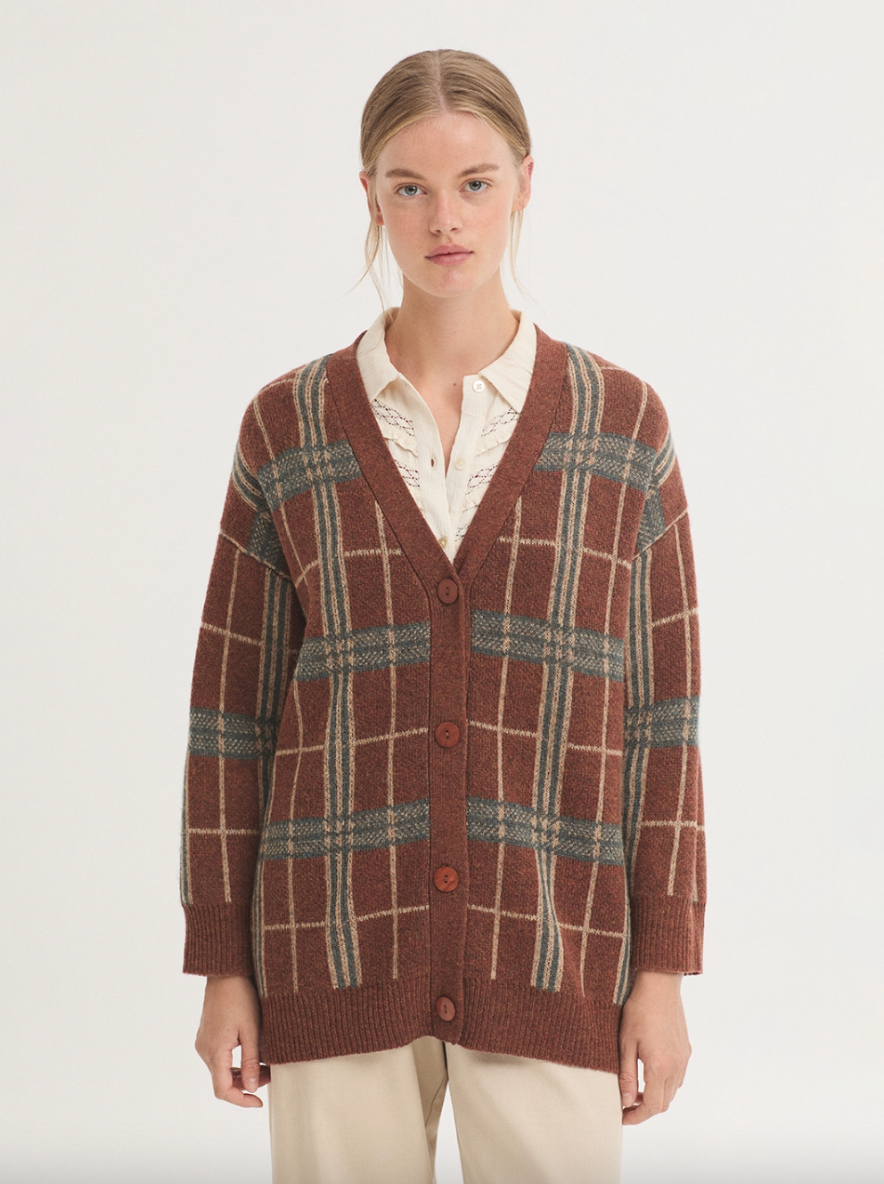 CÁRDIGAN CUADROS EN LANA