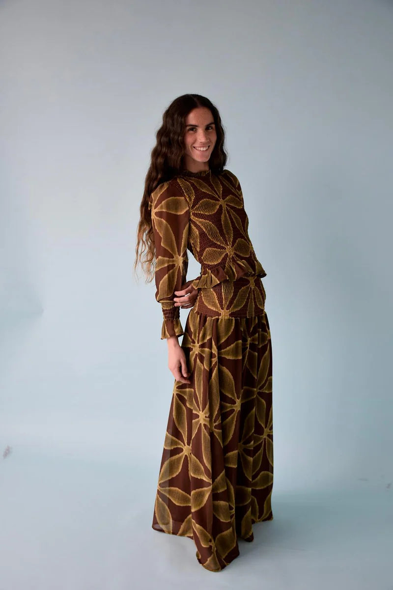 BLUSA TRÉBOL CHÍA VERDE Y MARRÓN