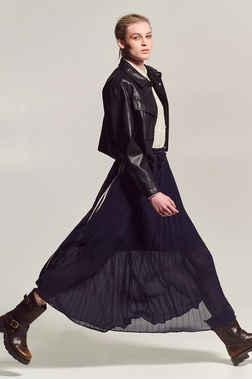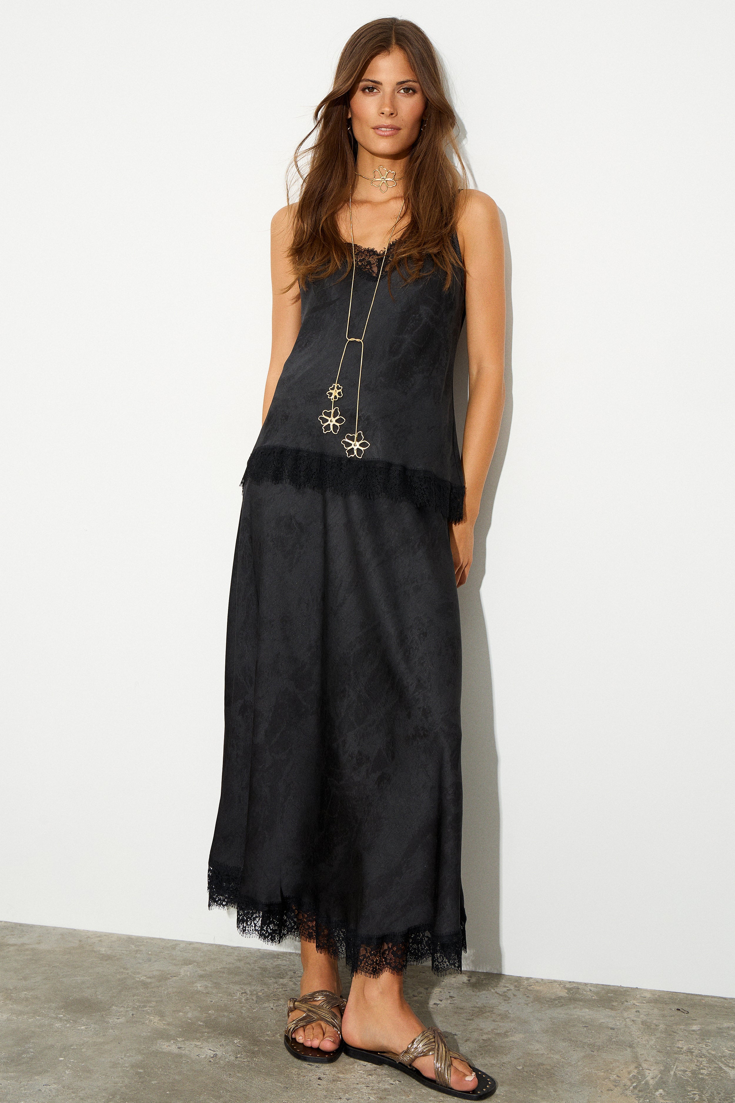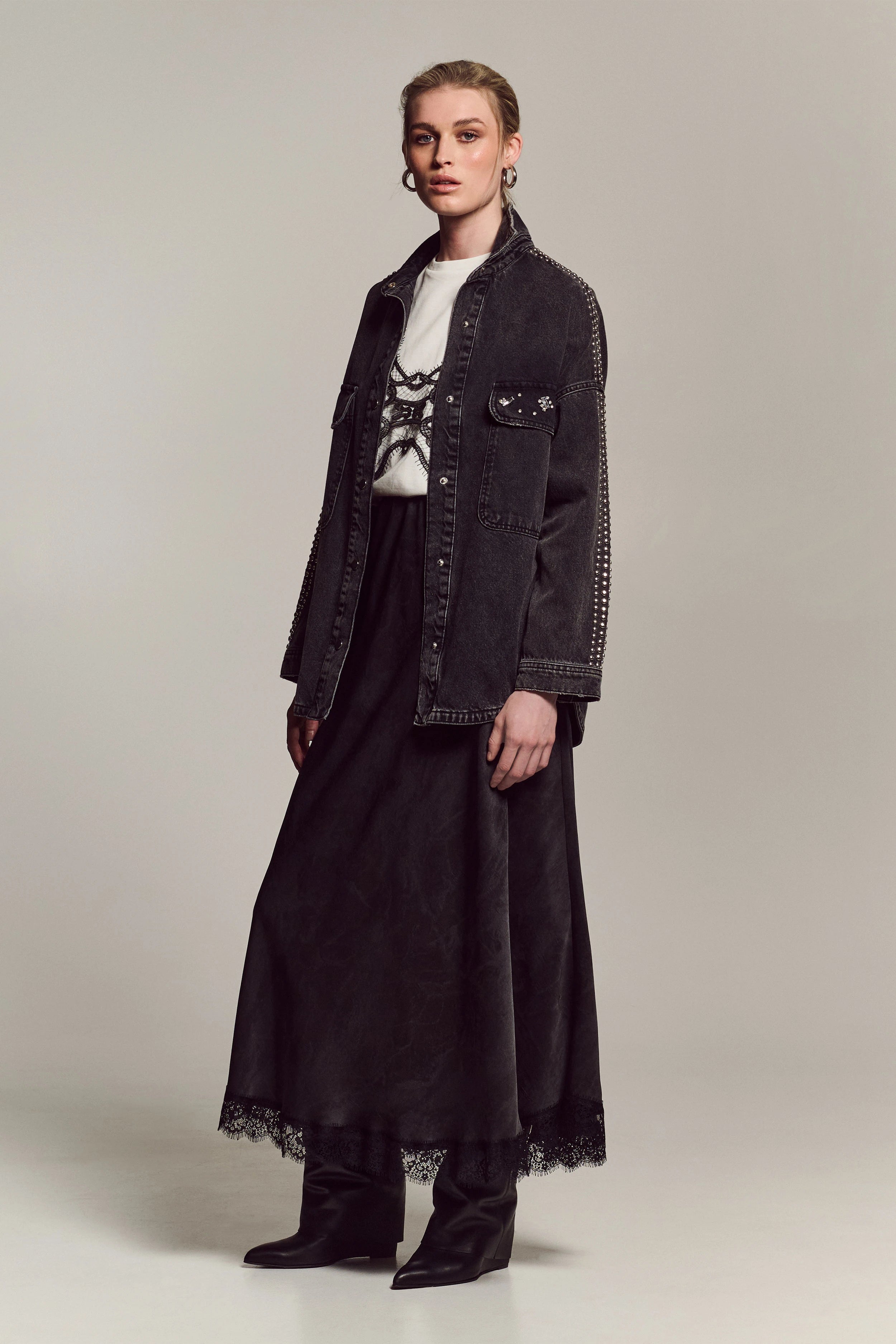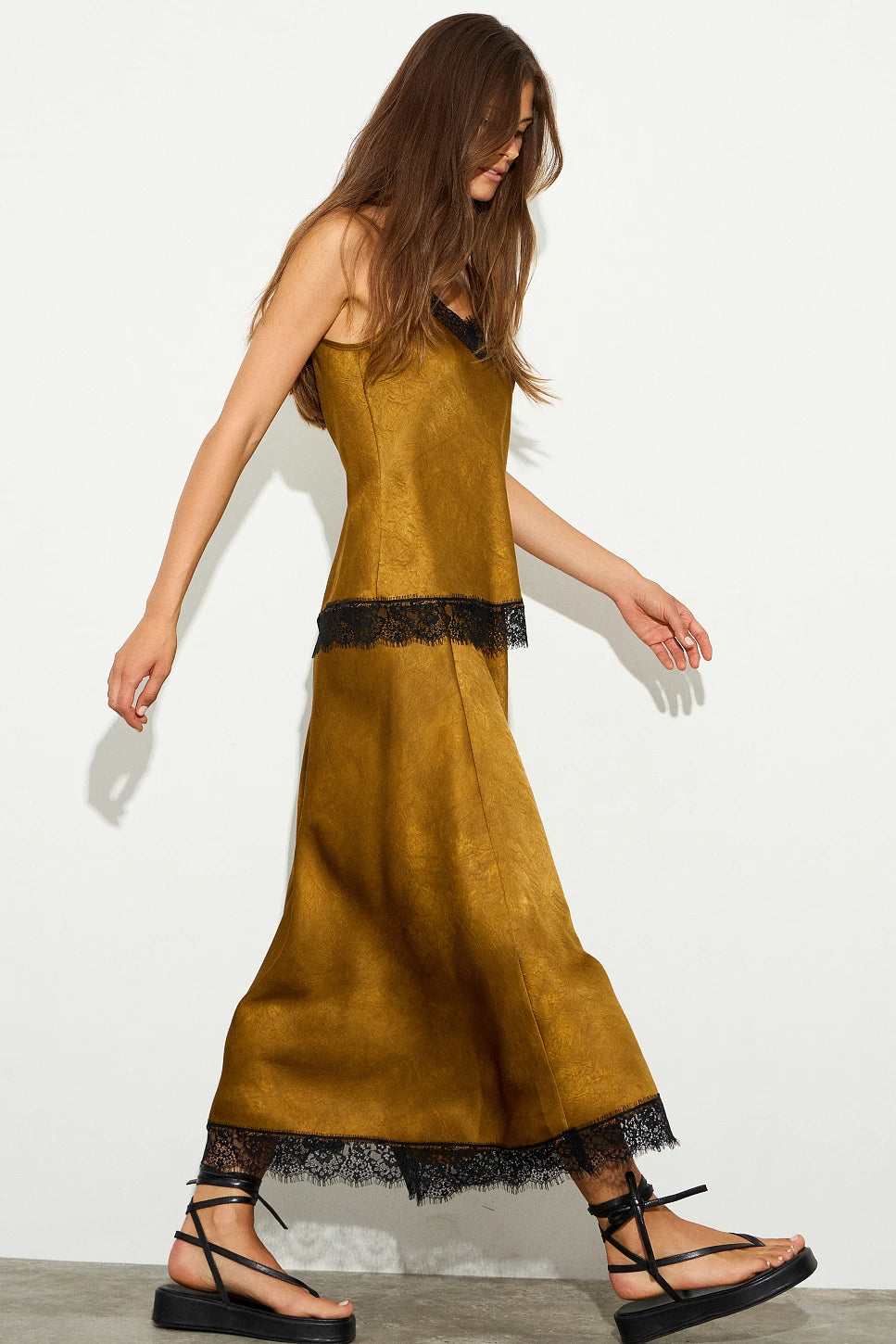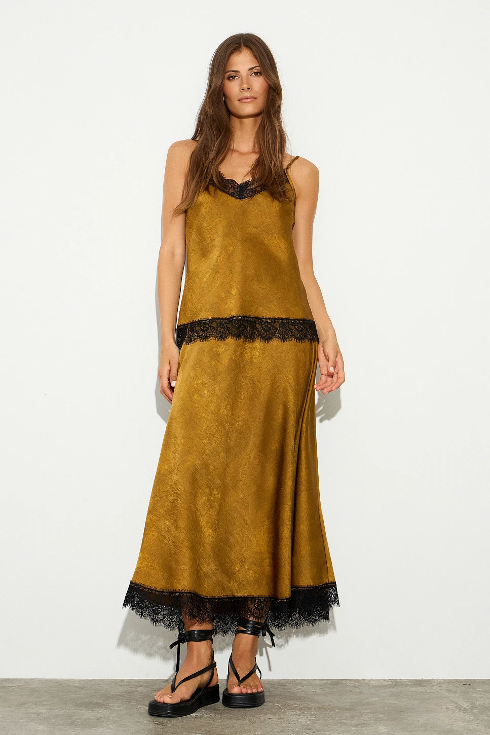 FALDA LARGA CON ENCAJE VERDE OLIVA
