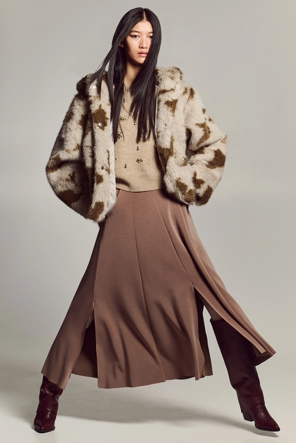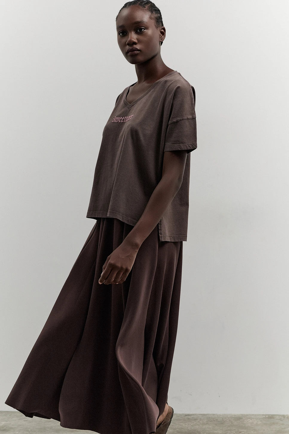 FALDA LARGA CON ABERTURAS MARRÓN CHOCOLATE