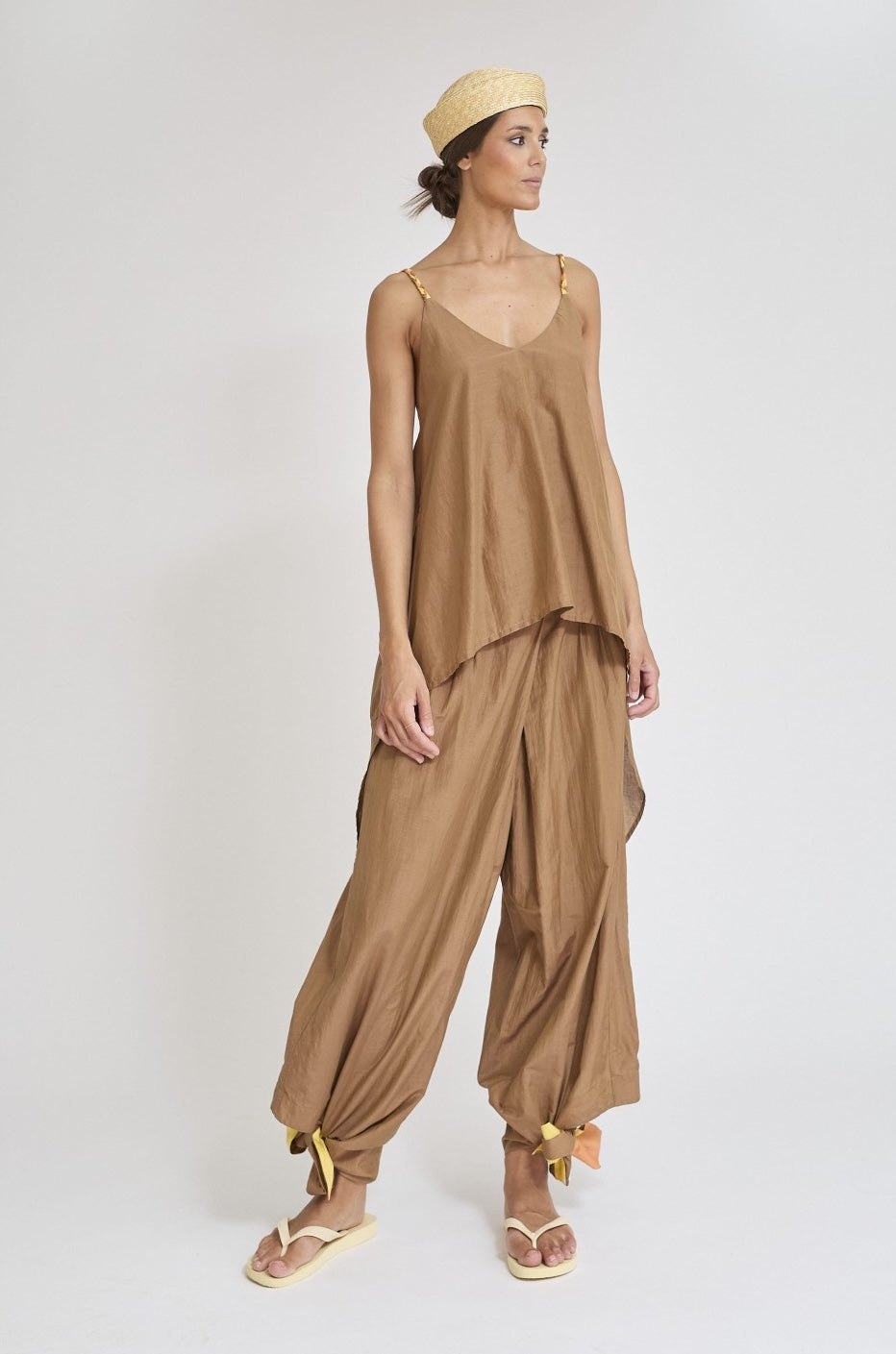 CAMISETA NÚRIA AMARILLO Y MARRÓN