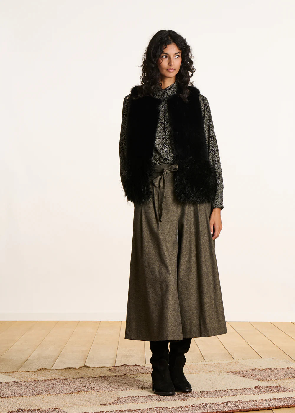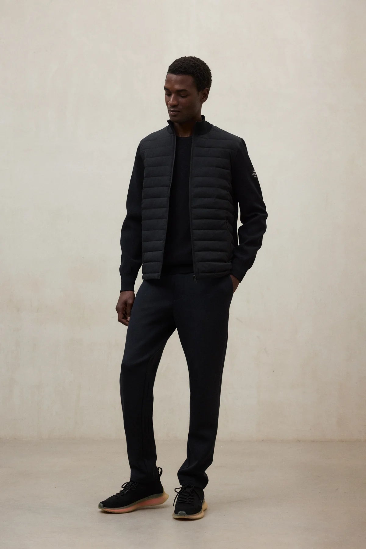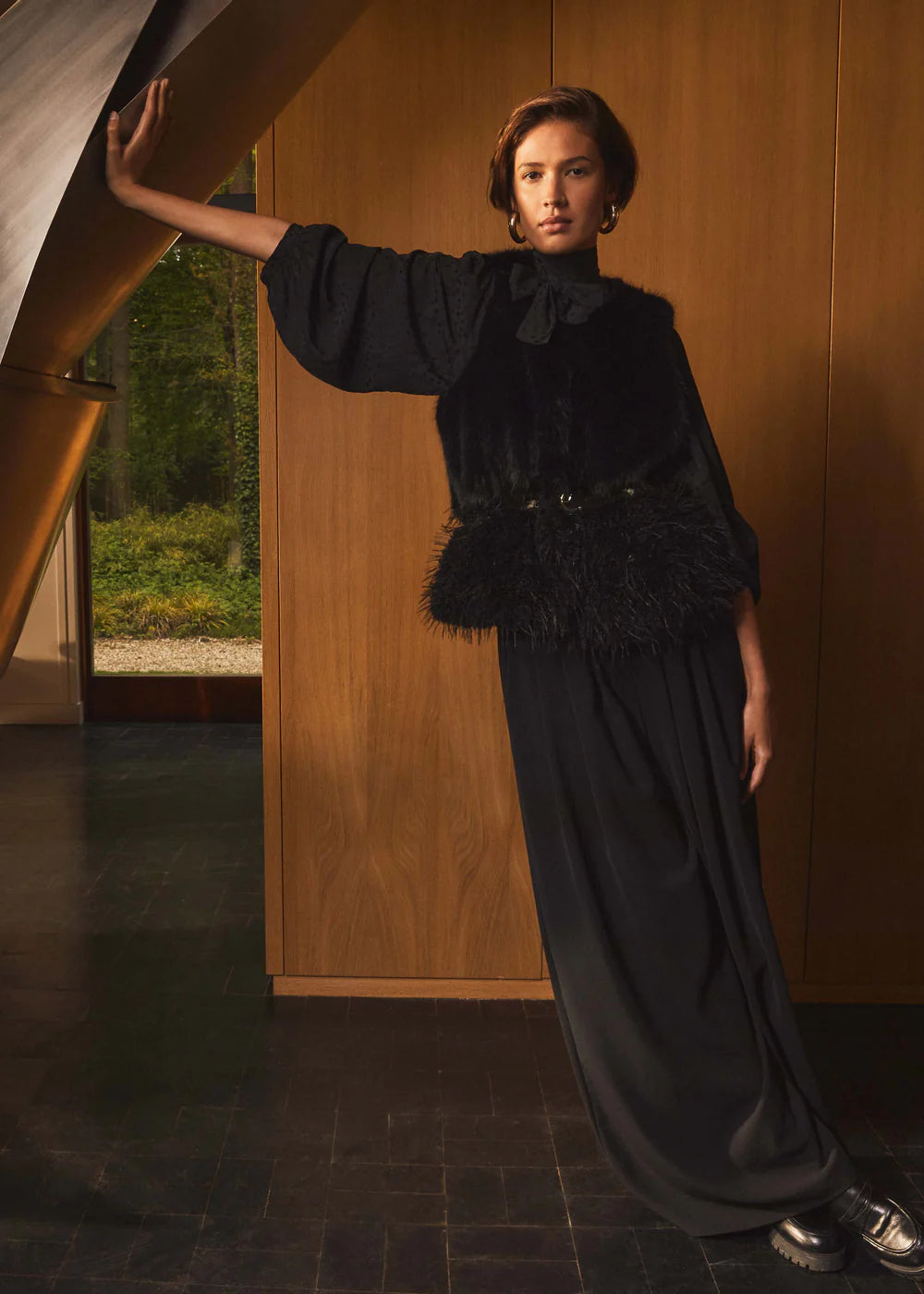 ABRIGO CORTO SIN MANGAS COLOR NEGRO EFECTO PATCHWORK
