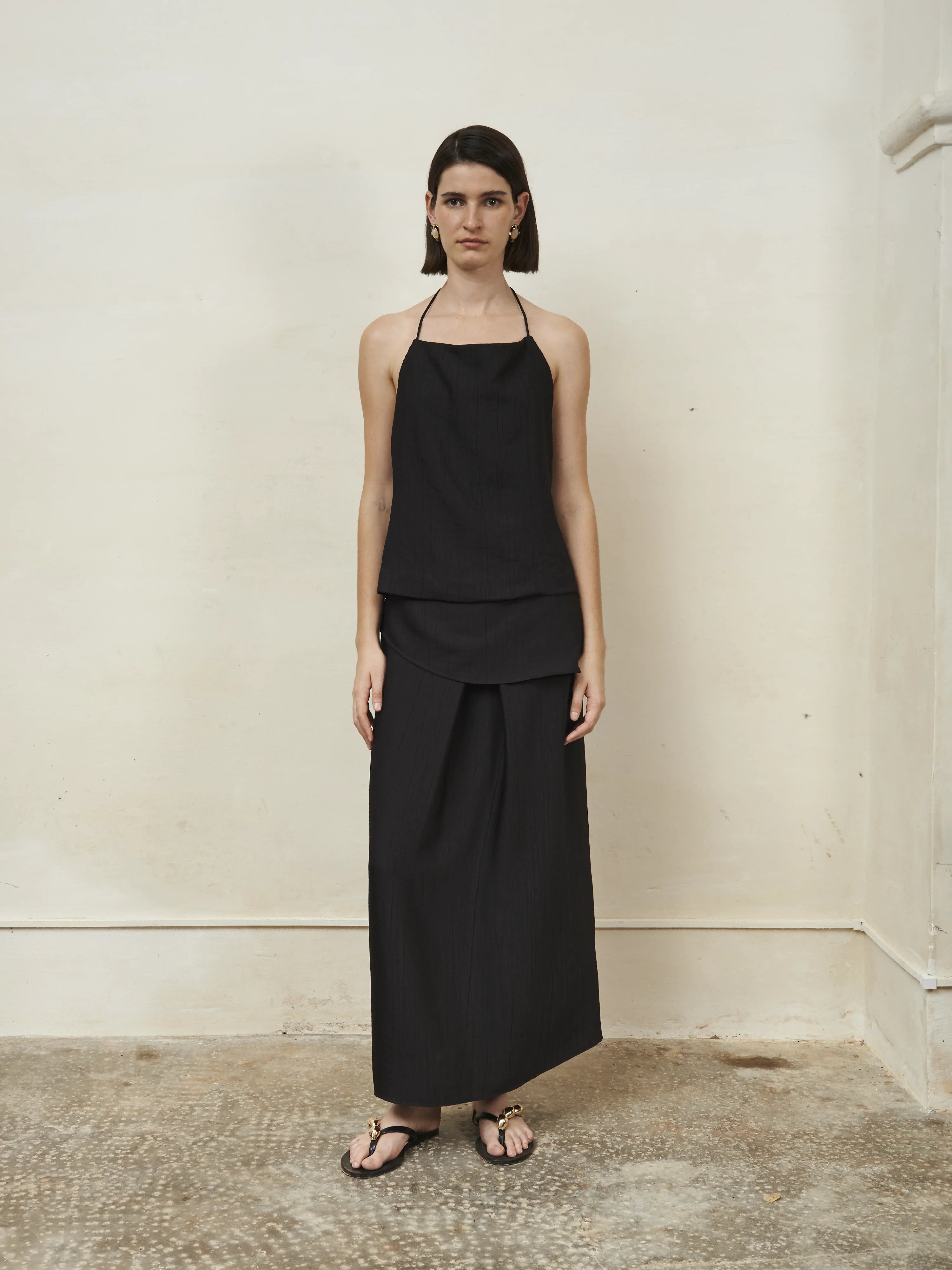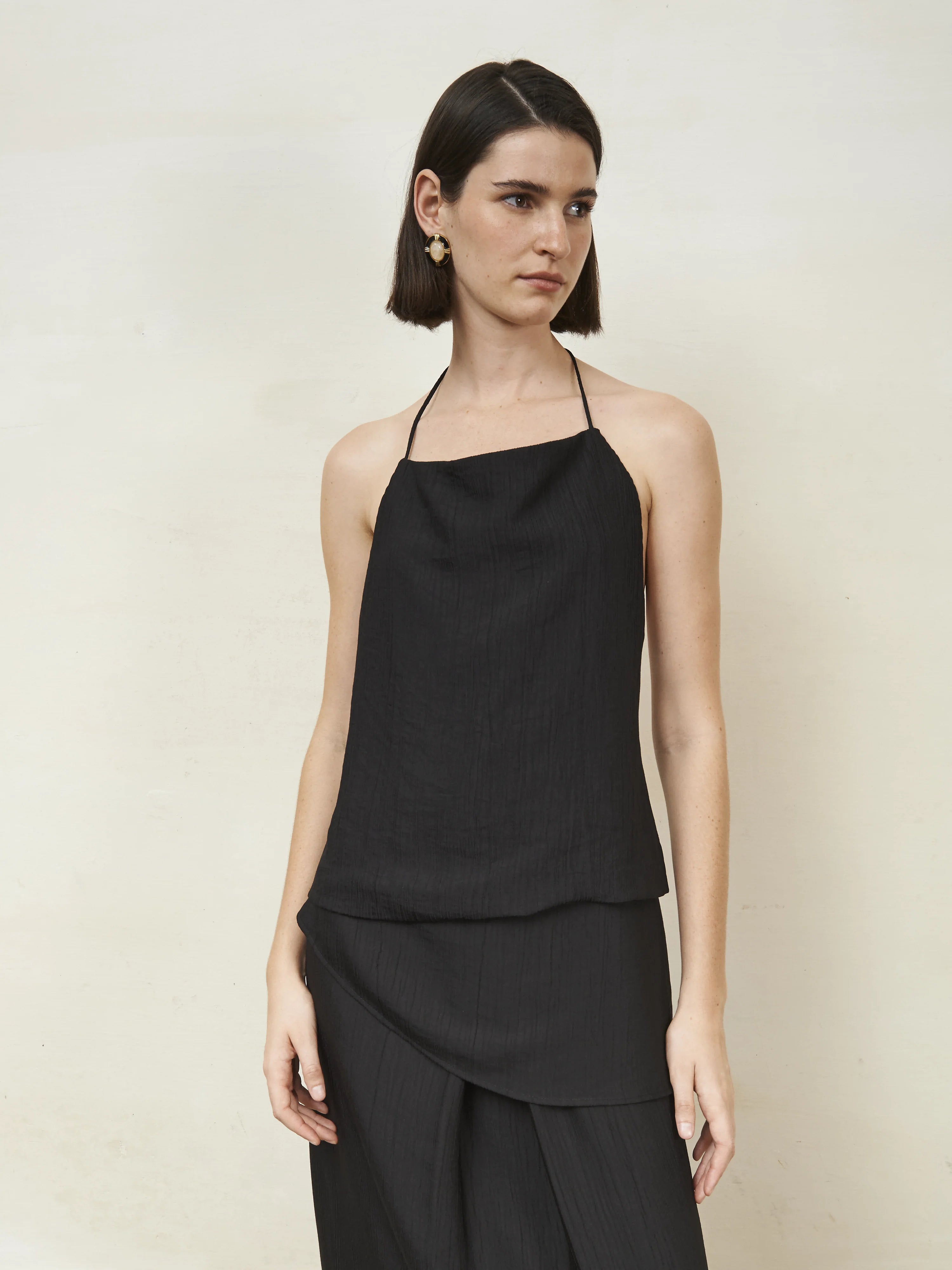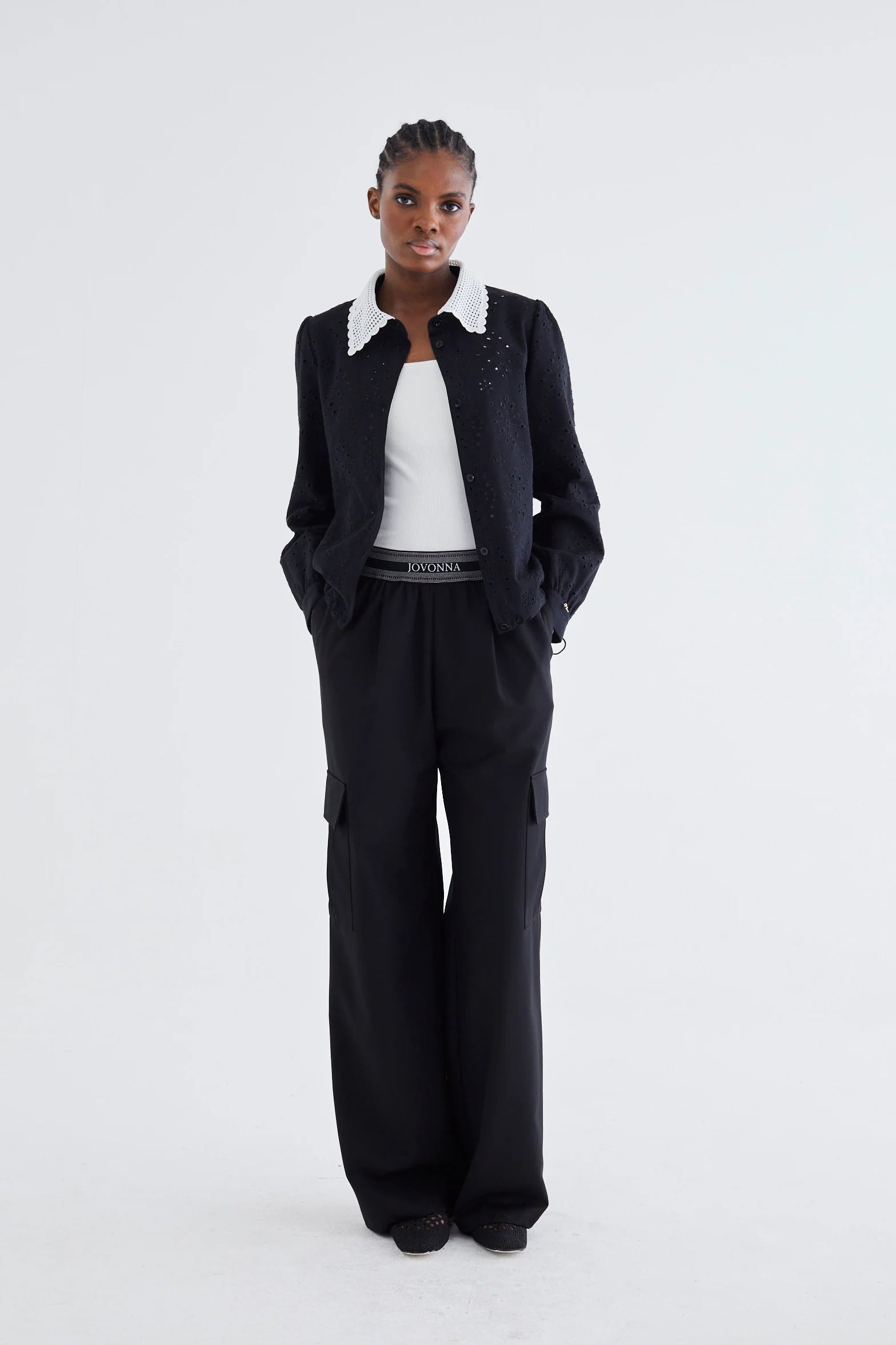 ABRIGO CORTO SIN MANGAS COLOR NEGRO EFECTO PATCHWORK