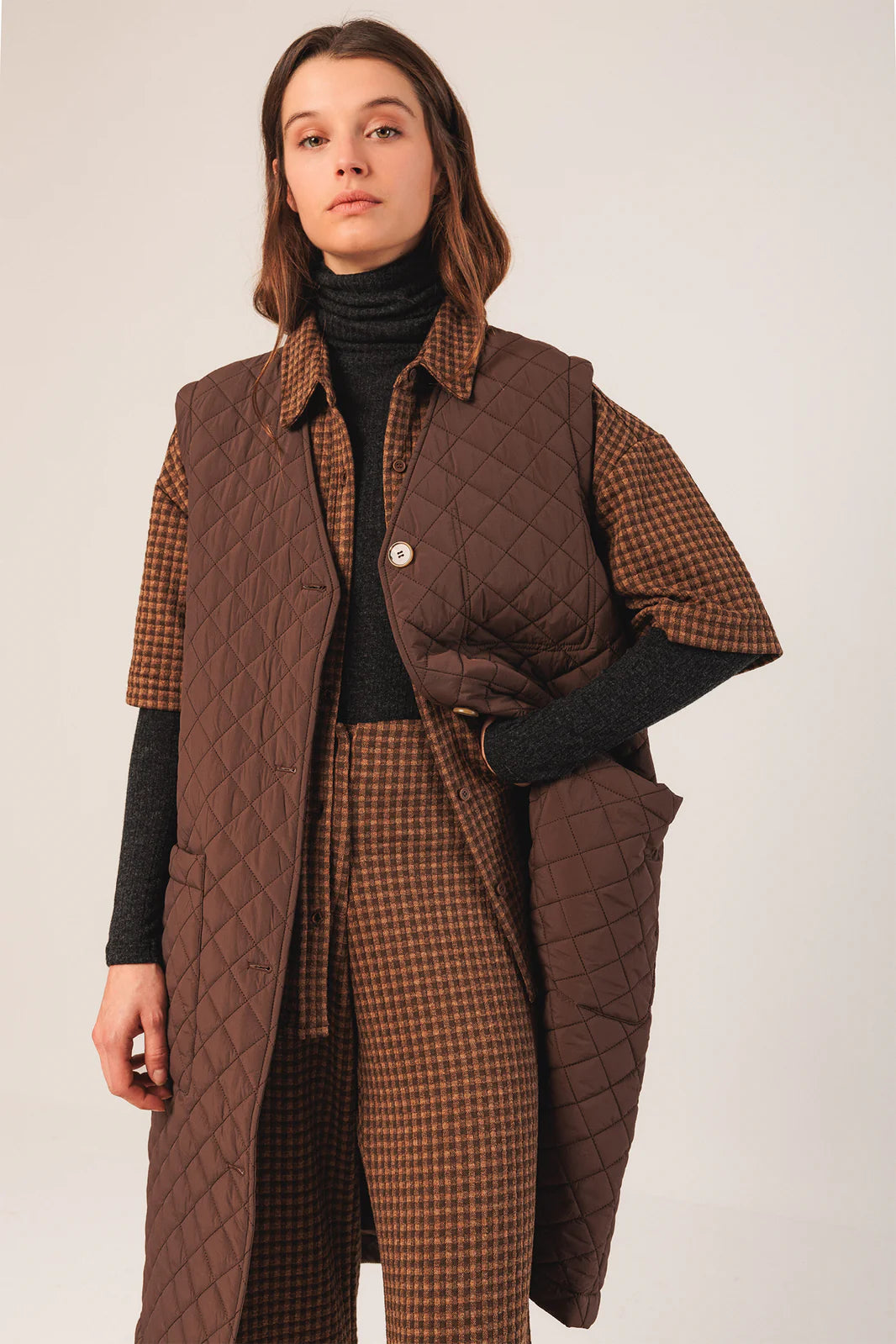 CHALECO ACOLCHADO CUADROS CHOCOLATE