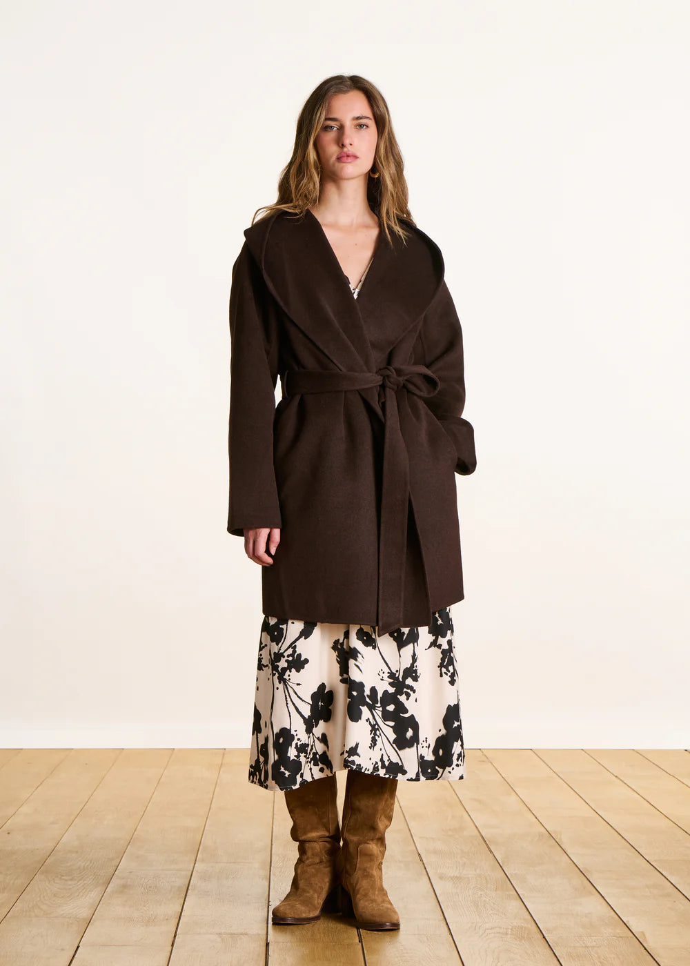 ABRIGO 3/4 MARRÓN CON CAPUCHA DE LANA