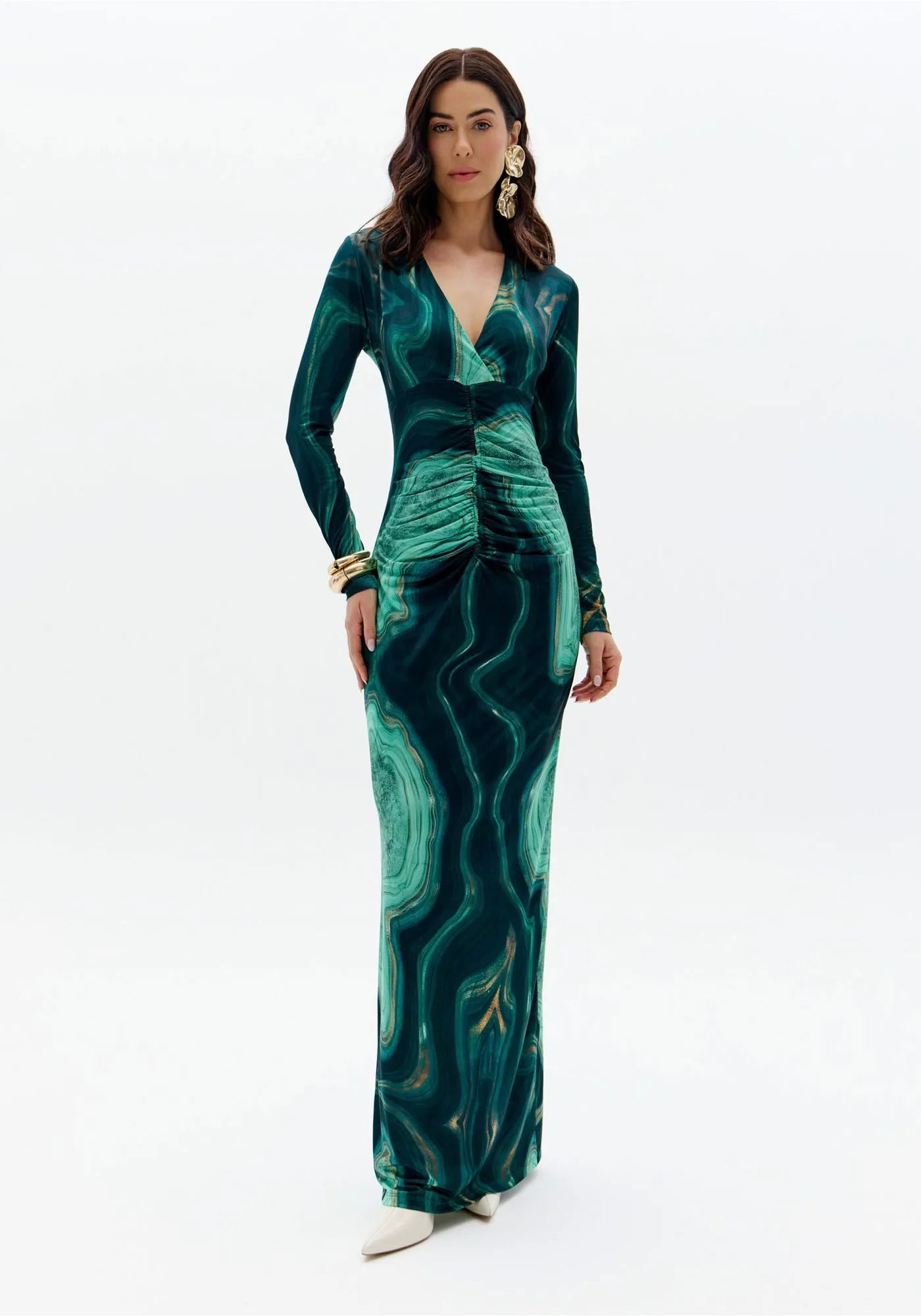 VESTIDO ESTAMPADO VERDE MANGA LARGA