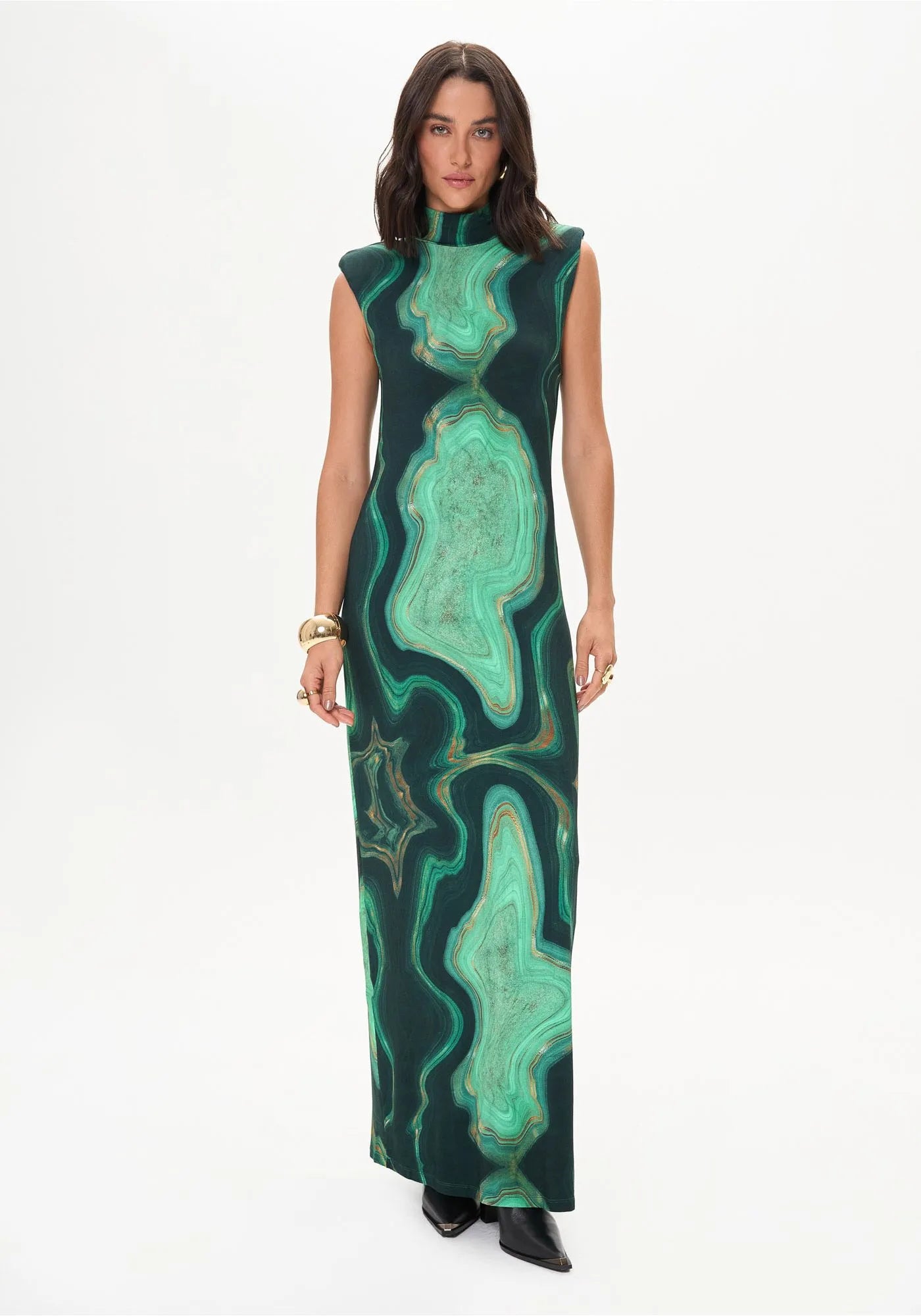 VESTIDO ESTAMPADO VERDE SIN MANGAS