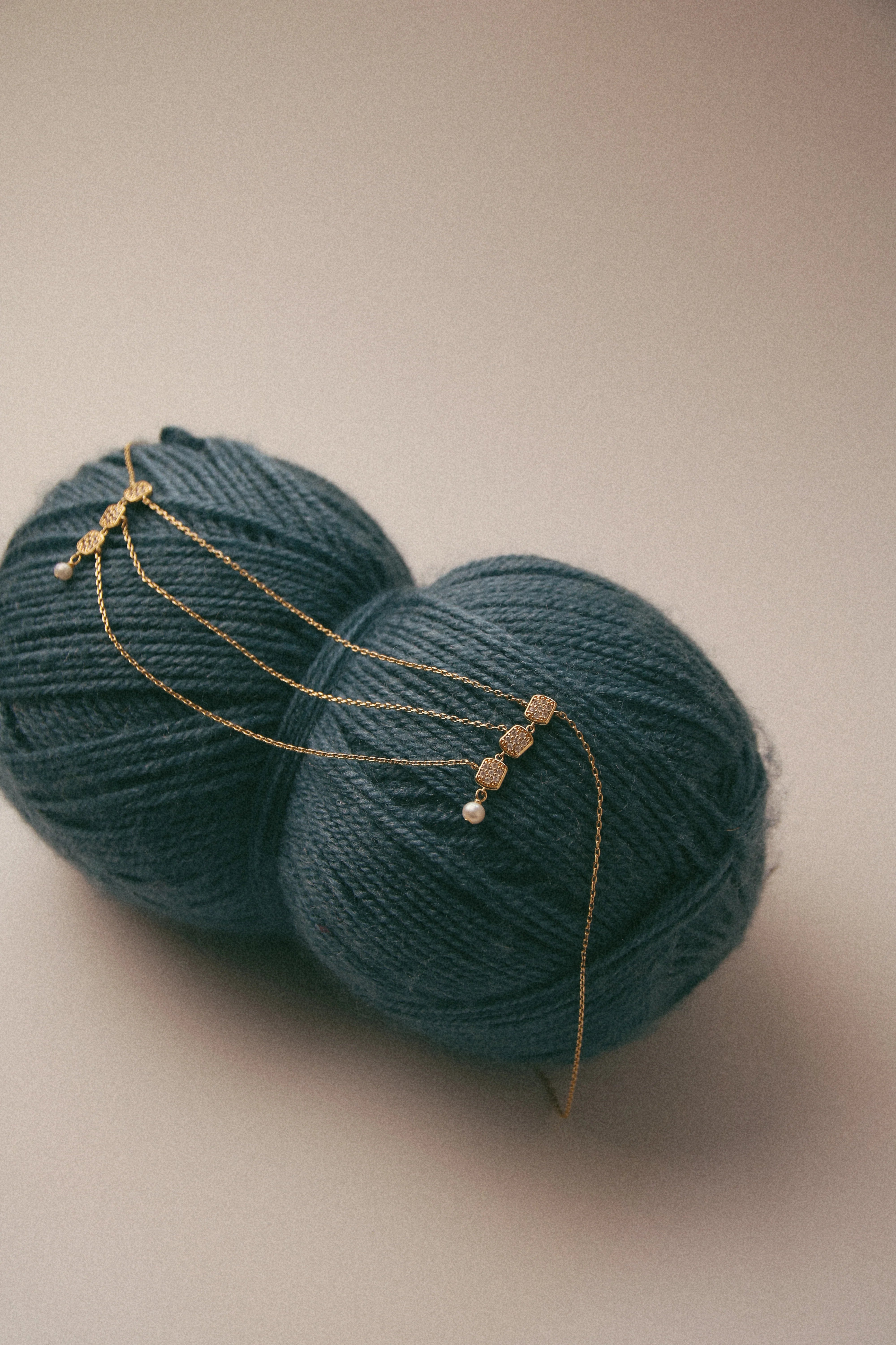 El Colgante Hana fabricado en Latón con un baño de 3 micras de Oro de 18 quilates. Su diseño se caracteriza por uno de los motivos protagonistas de nuestra colección Aurea.